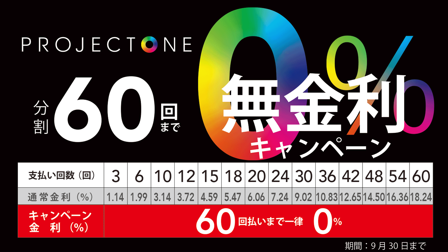 9月末まで60回までの分割金利手数料無料キャンペーンも開催中!