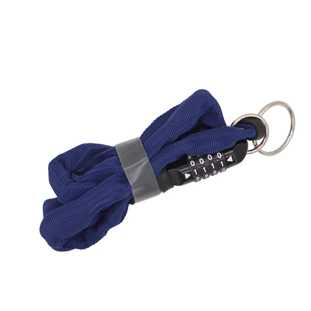 ダイヤル式のチェーンロック。ダブルループ構造をうまく使うことで前輪と後輪にそれぞれチェーンの輪をかけたり、2台一緒にロックをかけたり、いろいろな使い方ができます。140㎝という十分な長さで地球ロックもしやすいです。