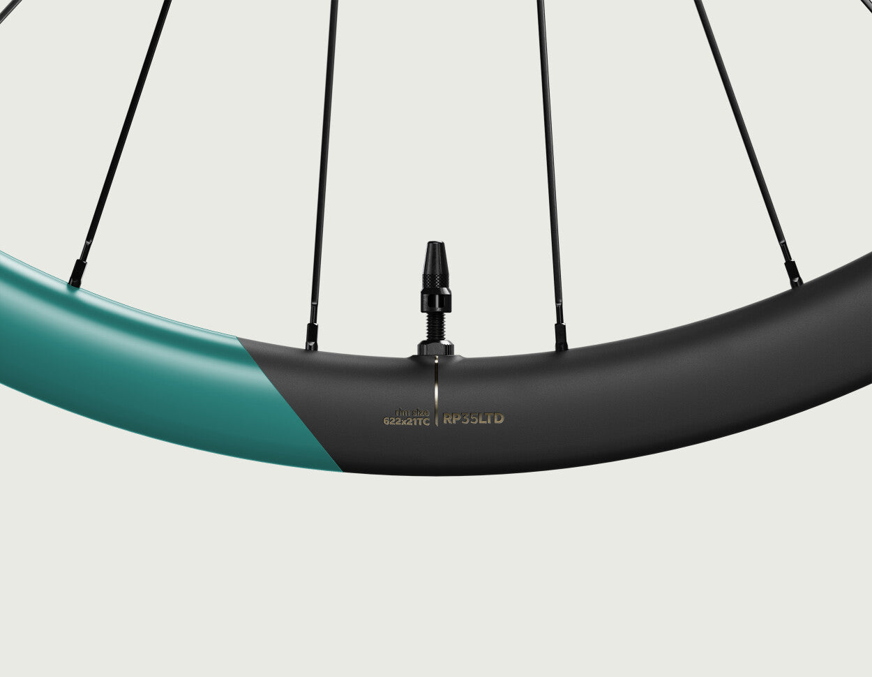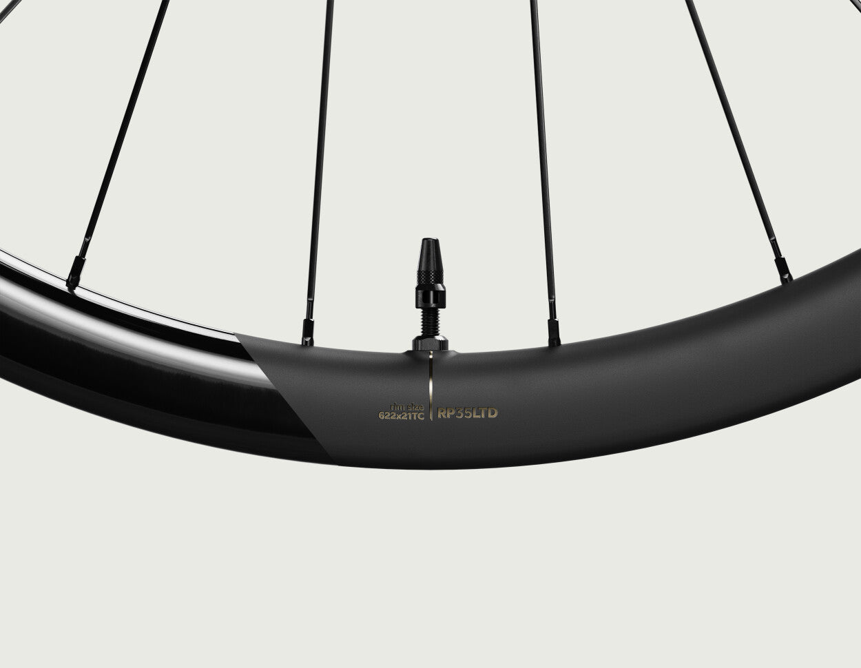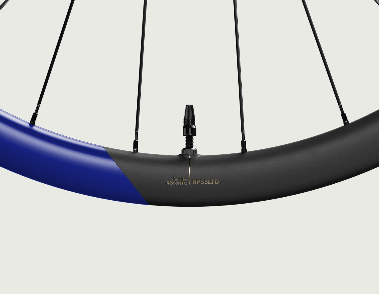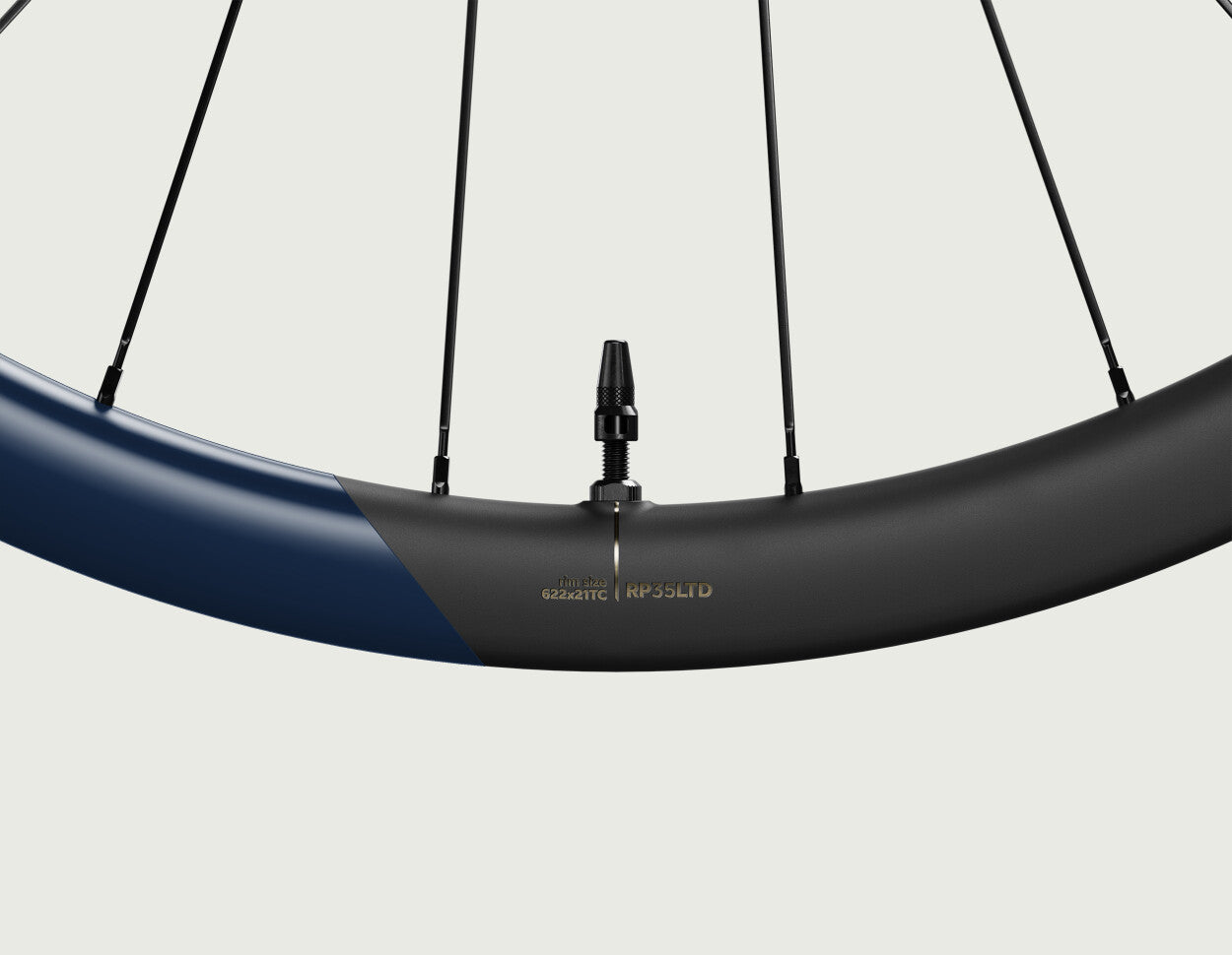 メーカーはRP50 LTDを「空力+荒れた路面でのコンプライアンス(内幅25mm)」方向性として説明しています。高速域や荒れた路面の安定感を優先するならRP50 LTD、登り・踏み直しの軽快さを優先するならRP35 LTDが目安です。