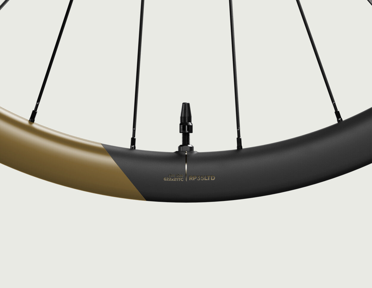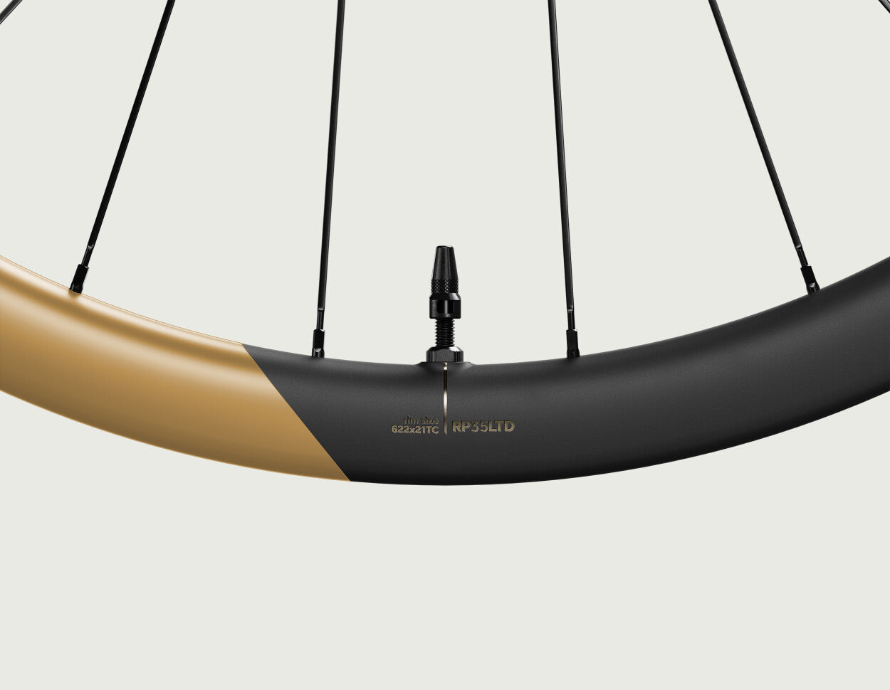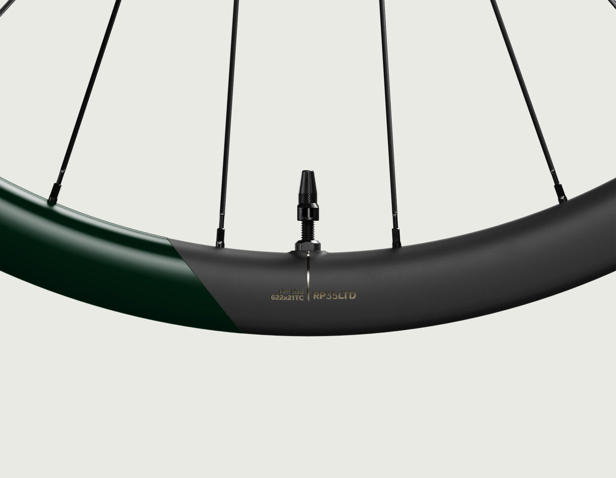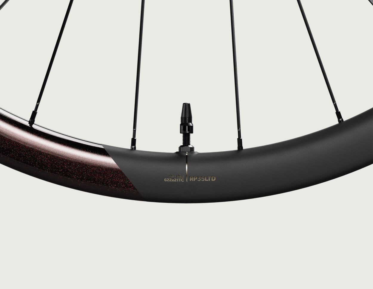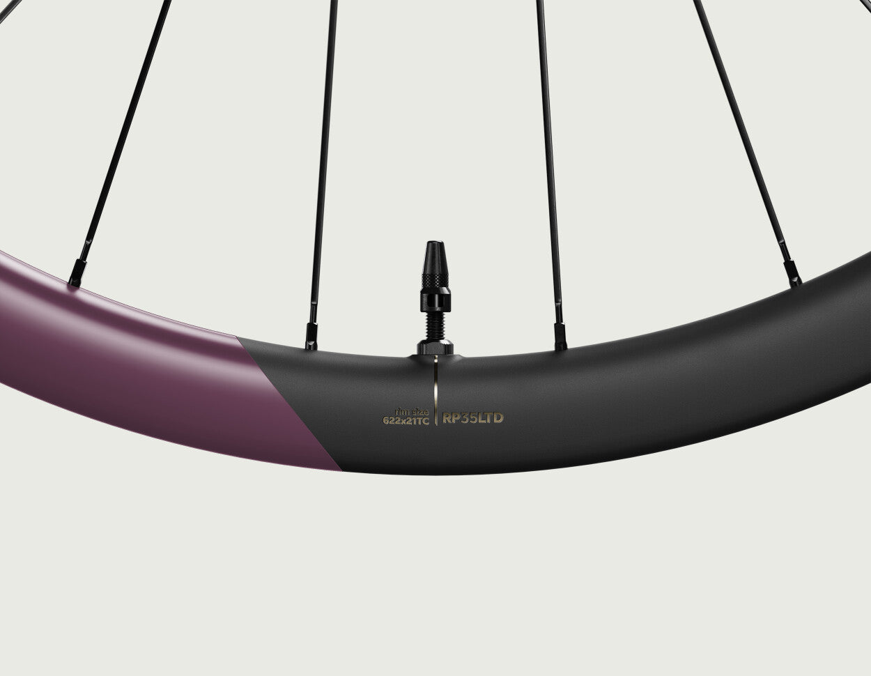 メーカーはRP50 LTDを「空力+荒れた路面でのコンプライアンス(内幅25mm)」方向性として説明しています。高速域や荒れた路面の安定感を優先するならRP50 LTD、登り・踏み直しの軽快さを優先するならRP35 LTDが目安です。