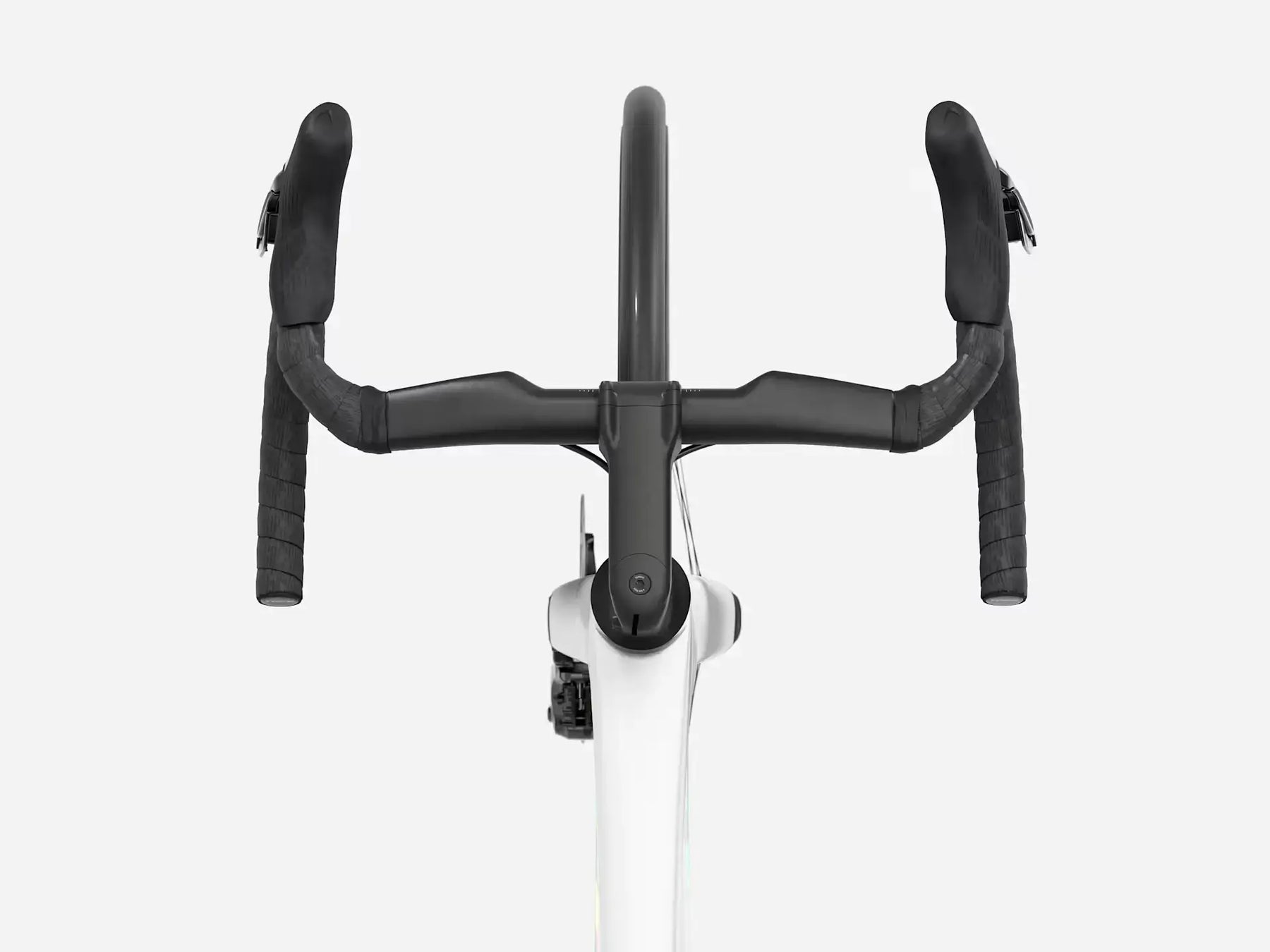 Madone Gen 8の特徴の一つがドロップ部分よりも狭いブラケット部、これでエアロ性能とパワー出力の優先次第によってポジションを選べる。さらに2ピース構造で、素早く簡単にフィットを調整できる。