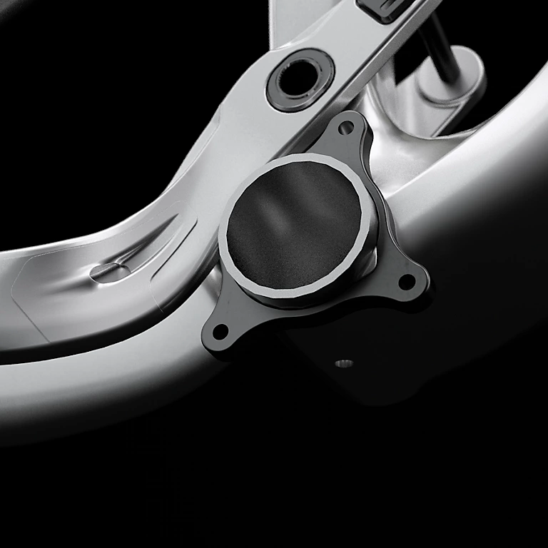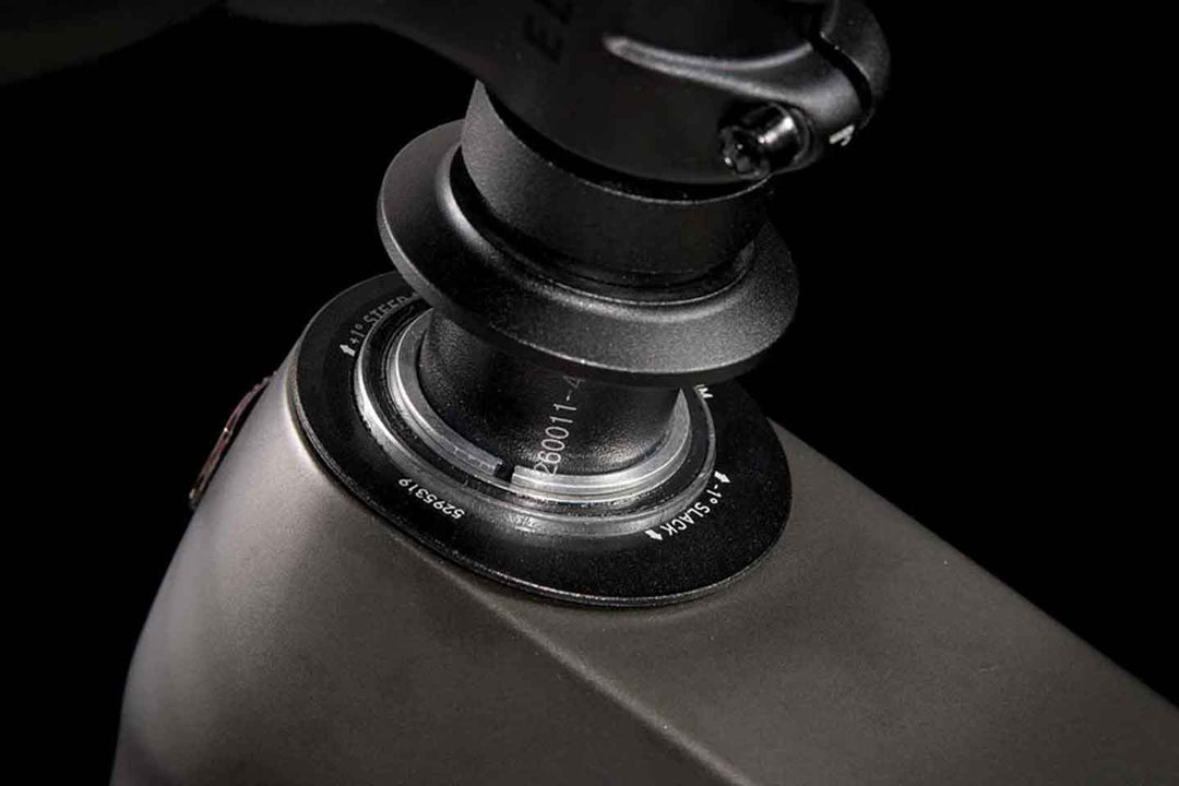 こちらのMinoリンクの向きを入れ替えればヘッド角とBB高を変更できる。ハンドル操作感とバイクの重心を工具一つで変更可能なのも見逃せない。