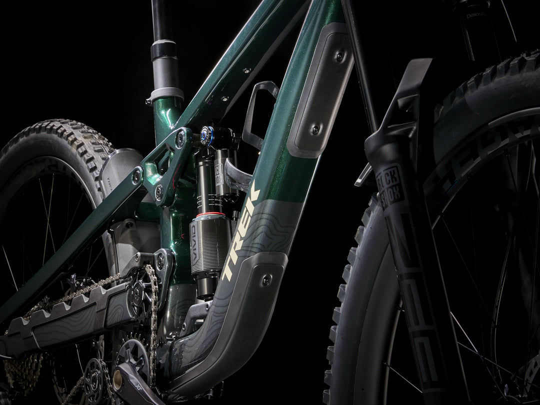 あらゆるトレイルを厳しいコンディションの中で走るのは機材にさらなる負担を課す。フレームは衝撃を受けた後にも、強度を保ち続けられるのかどうか...。異なる素材と異なるレイアップにより、大きく衝撃を受ける部位の強度を高めたトレックはいま、アルミニウムのそれをも凌ぐレベルだ。カーボンアーマーも付属する。
