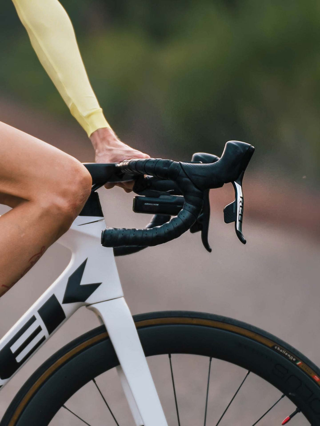 また前傾は、走行中の空気抵抗を軽減することにも繋がっていますが、極限まで空気抵抗を減らすために極度な前傾姿勢を基本のポジションとするのは避けた方が賢明です。局部的に筋肉や関節のコリや痛みを発生させやすく、長い目で見るととても非効率です。