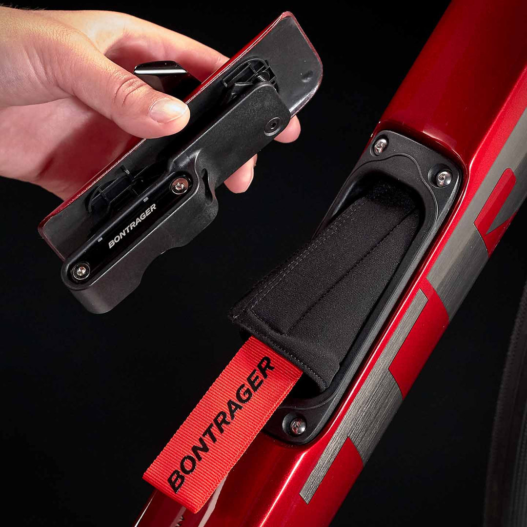 ダウンチューブに設けられたストレージには、携帯用工具やポンプ、タイヤレバーなどを収納できます。ライドの必需品の持ち忘れも防げます。サドルバッグの代わりとして使うもよし、バイクパッキングでの荷物の分散に使うもよし!