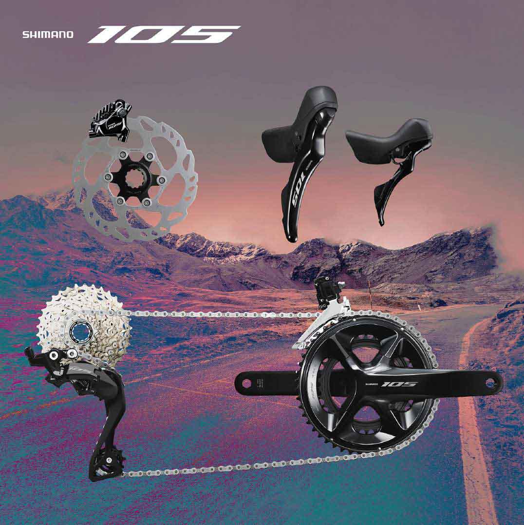 2×12速の105のフルコンポ。ブレーキは油圧ディスクブレーキを採用し、軽いタッチでしっかり効きます。