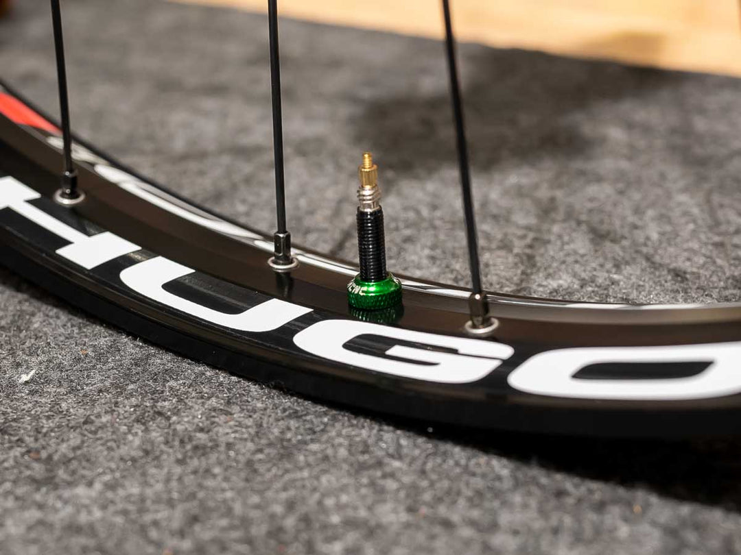 Stan's No TubesのバルブとKCNCのバルブナットを使用。カラーバリエーションもあるパーツなので、カスタムを楽しめます。