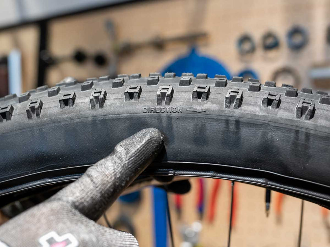 ほとんどのタイヤで回転方向が指定されているので、このような表記の通りにタイヤの向きをセットします。ここ間違えて、最初からやり直しはかなりツライので要注意です。